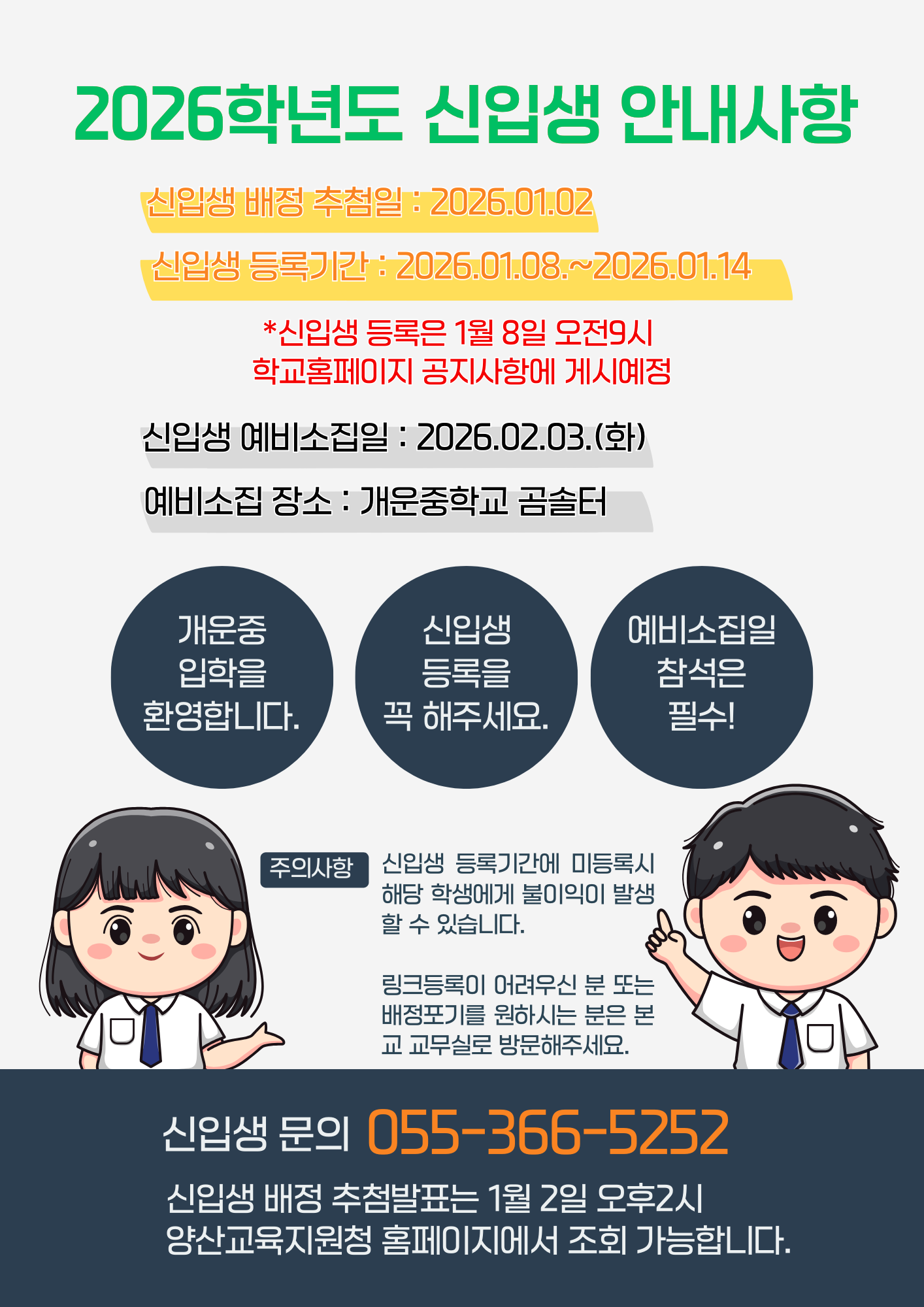 2026학년도 신입생 배정 일정 및 등록 안내사항